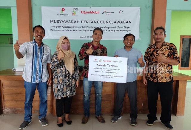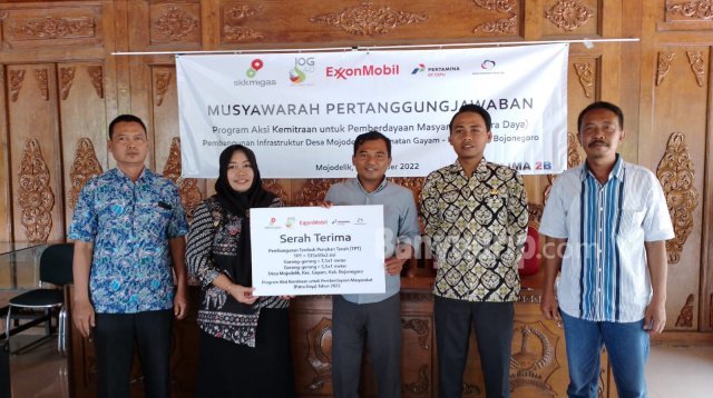Bojonegoro – Operator lapangan minyak dan gas bumi (Migas) Banyu Urip, Blok Cepu, ExxonMobil Cepu Limited (EMCL) bersama mitra pendamping dari LIMA 2B (Lembaga Informasi dan Komunikasi Masyarakat Banyu Urip Bangkit) melaksanakan serah terima infrastruktur Patra Daya (Program Aksi Kemitraan untuk Pemberdayaan Masyarakat).