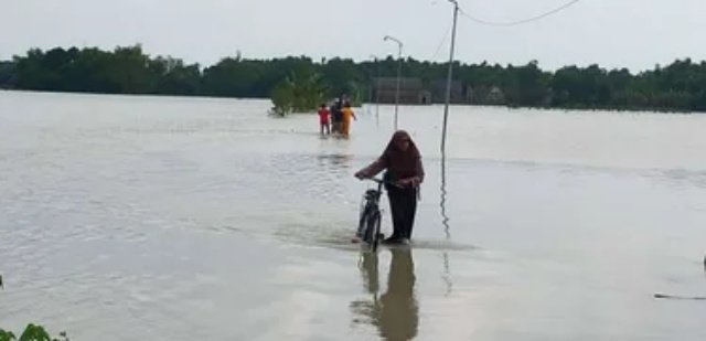 Sejumlah jalan poros desa dan ratusan hektar sawah di wilayah Kecamatan Balen, Kabupaten Bojonegoro, yang terendam banjir.