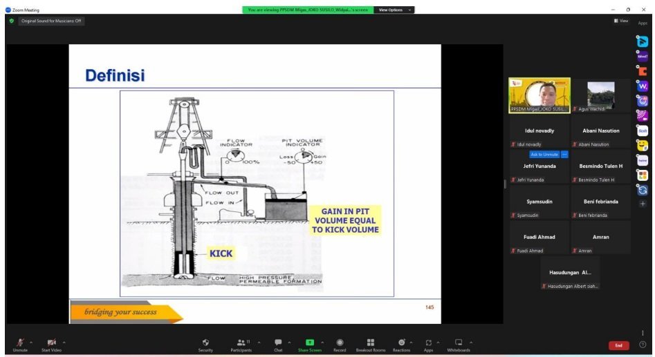 Karwandi, pemimpin pelatihan ini menjelaskan bahwa pelatihan atau refresh selama satu hari ini membahas beberapa materi yaitu Completion Fluids, Surface and Sub Surface Equipment, dan Rig Equipment.