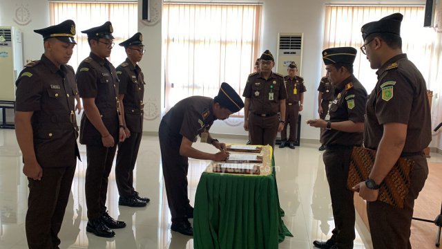 Pelantikan dan pengambilan sumpah dan janji tiga PNS Kejari Bojonegoro itu berlangsung di aula kantor kejaksaan setempat. Diikuti oleh seluruh pegawai institusi yang memiliki seloka Satya Adhi Wicaksana di kabupaten penghasil migas ini.