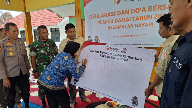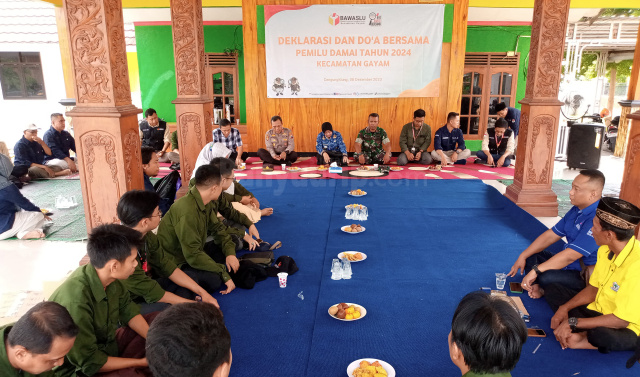 Bojonegoro – Guna mewujudkan Pemilihan Umum (pemilu) yang damai pada tahun 2024, Panitia Pengawas Kecamatan (Panwascam) Gayam, Kabupaten Bojonegoro, Jawa Timur, menggelar deklarasi, Jumat (08/12/2023).
