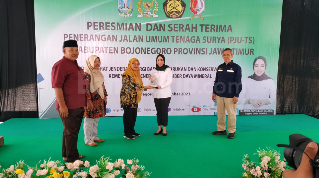 Bojonegoro – Anggota Dewan Perwakilan Rakyat Daerah Republik Indonesia (DPR RI) Hj. Ratna Juwita Sari dan Direktorat Jenderal Energi Baru, Terbarukan, dan Konservasi Energi Kementerian Energi dan Sumber Daya Mineral (Ditjen EBTKE KESDM) meresmikan dan serah terima Penerangan Jalan Umum Tenaga Surya (PJU-TS) di Bojonegoro.