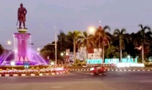 Pesta Night Colour Fun Walk di kawasan Patung Letda Sucipto di depan gedung DPRD Tuban, menyisakan kerusakan lingkungan di kawasan setempat.