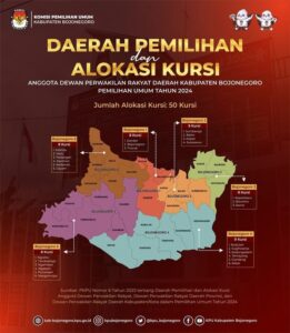 KPU Bojonegoro juga telah menetapkan 6 daerah pemilihan (dapil) yang masing-masing memiliki alokasi 8 sampai 9 kursi.